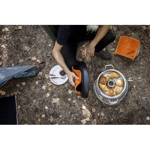 Ryškios Petromax oranžinės spalvos su tradiciniu logotipu puodkėlės ne tik praktiškos, bet ir stilingai papildo jūsų lauko gaminimo įrangą. Žinoma, jas galite naudoti ir namuose prie viryklės.