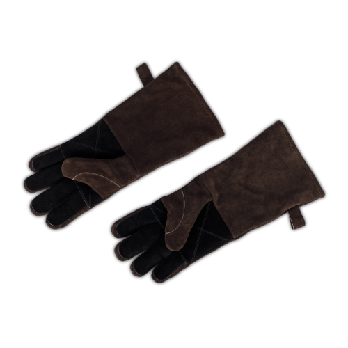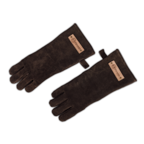 Rudos odinės grilio pirštinės iš tamsiai rudos zomšos, su patogiu vilnos pamušalu, atsparios iki 250°C. Su Kevlar® apsauga, jos suteikia saugumą dirbant prie kepsninės ir židinio.