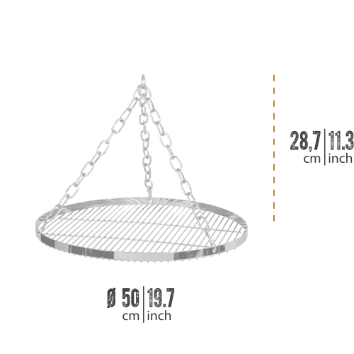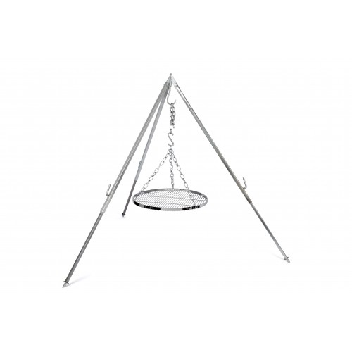Pakabinamas grotelių stovas Petromax trikojui papildo jūsų lauko virtuvę originalia grilinimo patirtimi prie laužo. Naudojant tris tvirtas grandines, chromuotas plienines groteles galima vienu paprastu judesiu pakabinti ant trikojio kablio, ir jos iš karto paruoštos naudojimui. Lengvai reguliuojamas grandinių ilgis.
