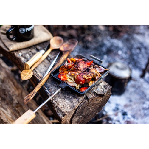 Medinės rankenos patogiai laikosi rankoje, o ilgas kotas užtikrina saugų atstumą nuo karščio šaltinio. Kadangi ketus yra iš anksto paruoštas, keptuvę galima naudoti iš karto. Be to, ketus turi natūralų nepridegantį paviršių, todėl jį lengva prižiūrėti.