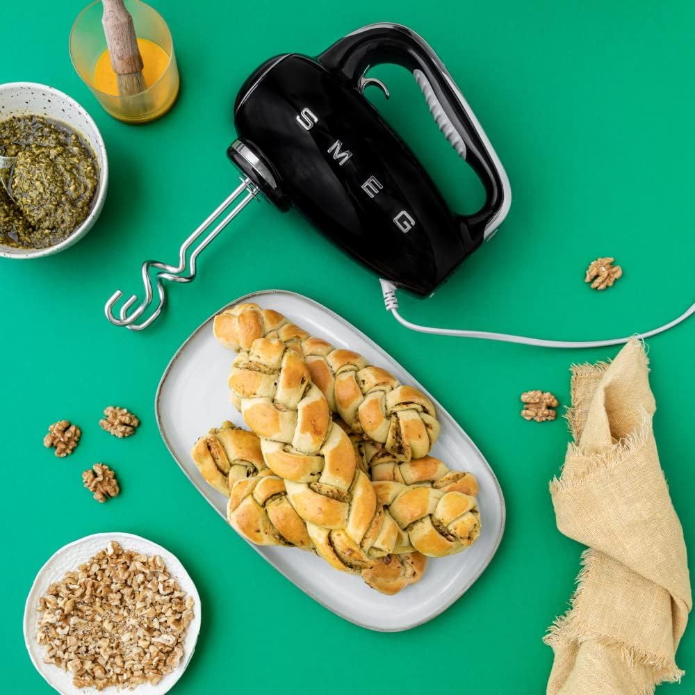SMEG HMF01 elektrinis rankinis mikseris tinka įvairiems saldiems ir sūriems patiekalams. Komplektacijoje yra trys skirtingų tipų nerūdijančio plieno plakikliai, užtikrina geriausią rezultatą kiekvienos patiekalo gaminime.
