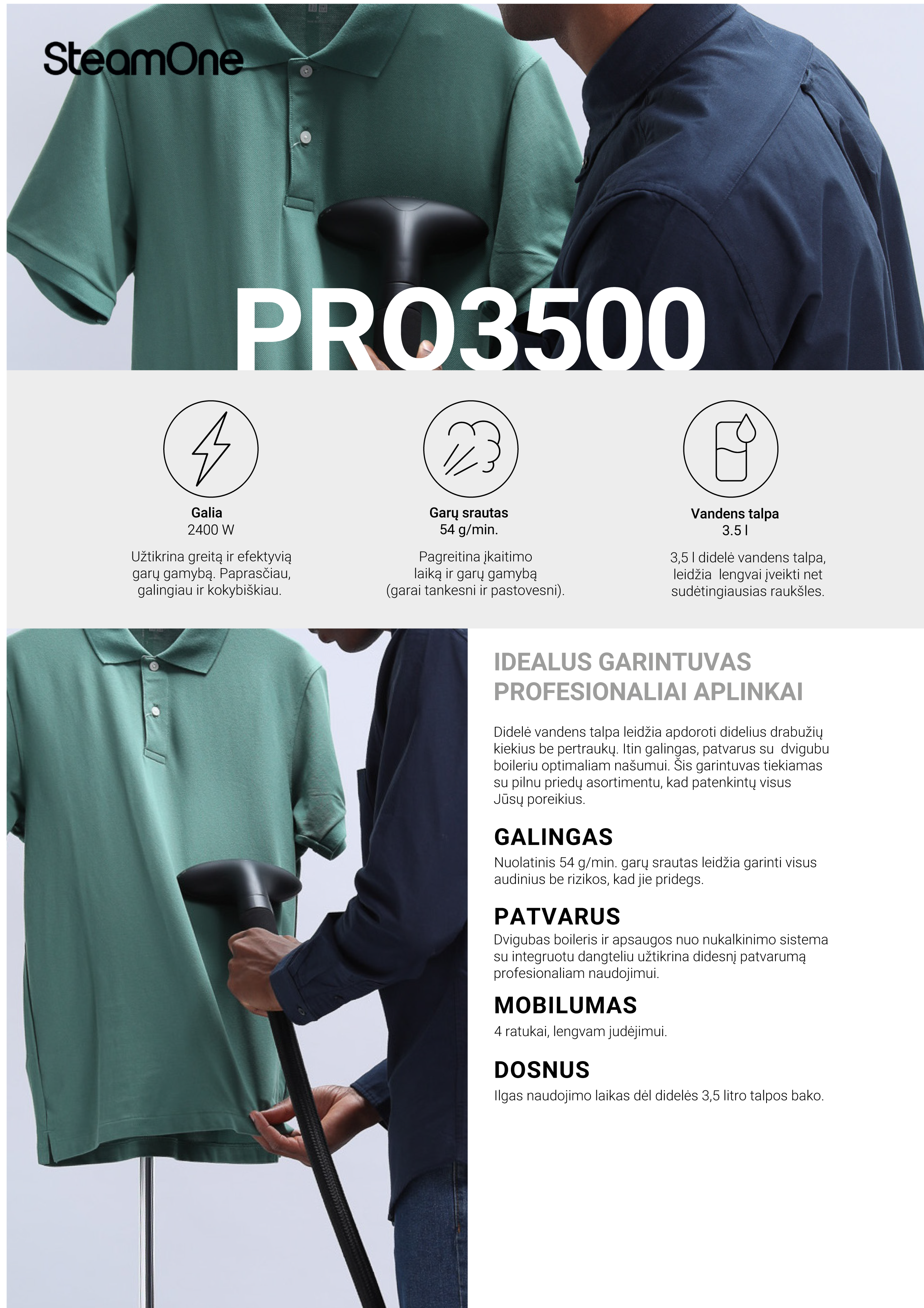 SteamOne PRO3500 drabužių garintuvas, juodas